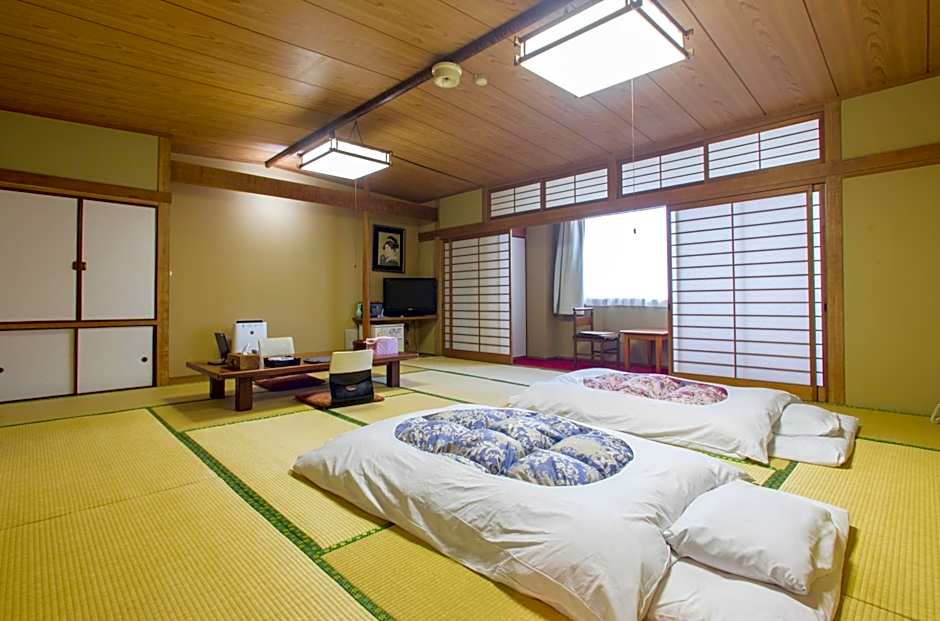 Offering free toiletries, this family room includes a shared bathroom with a hairdryer and slippers. The family room offers air conditioning, a washing machine, tatami, a dining area, as well as a flat-screen TV. The unit offers 4 futons.